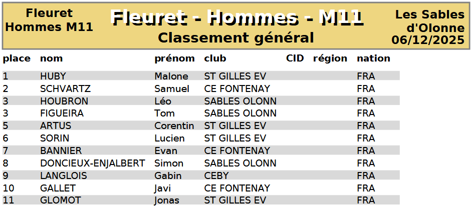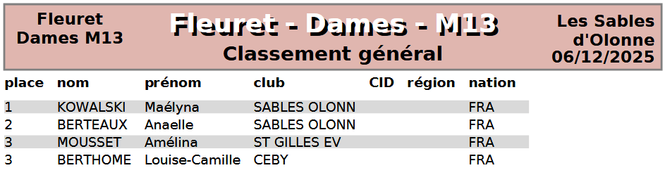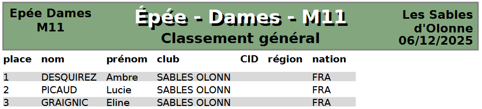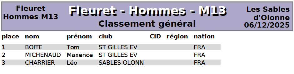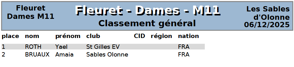 Organisée aux Sables d'Olonne, elle regroupa nos jeunes tireurs de M7 à M13 au fleuret, sabre et épée.