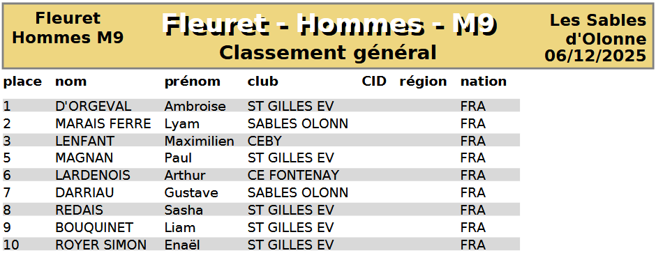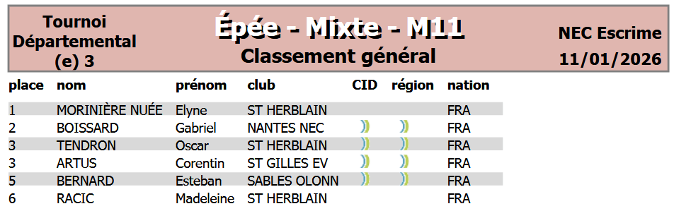 Compétition départementale en individuel du 6 décembre 2025