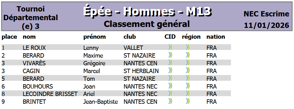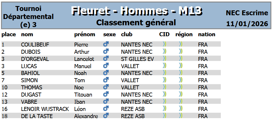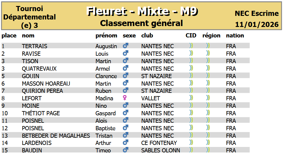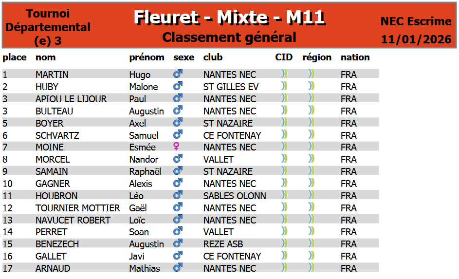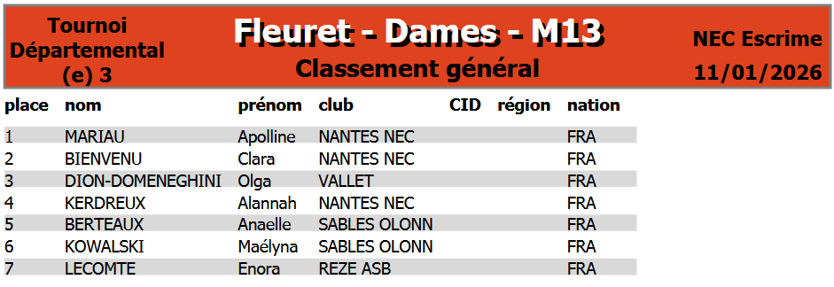 Organisée à Nantes par le CD44, elle regroupa nos jeunes tireurs de M9 à M15 au fleuret, sabre et épée.