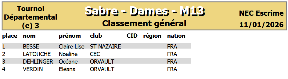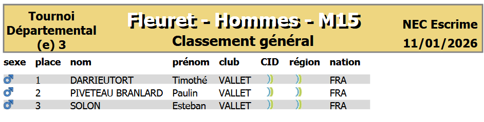 Compétition départementale par équipe mixte 3 armes du 11 Octobre 2025